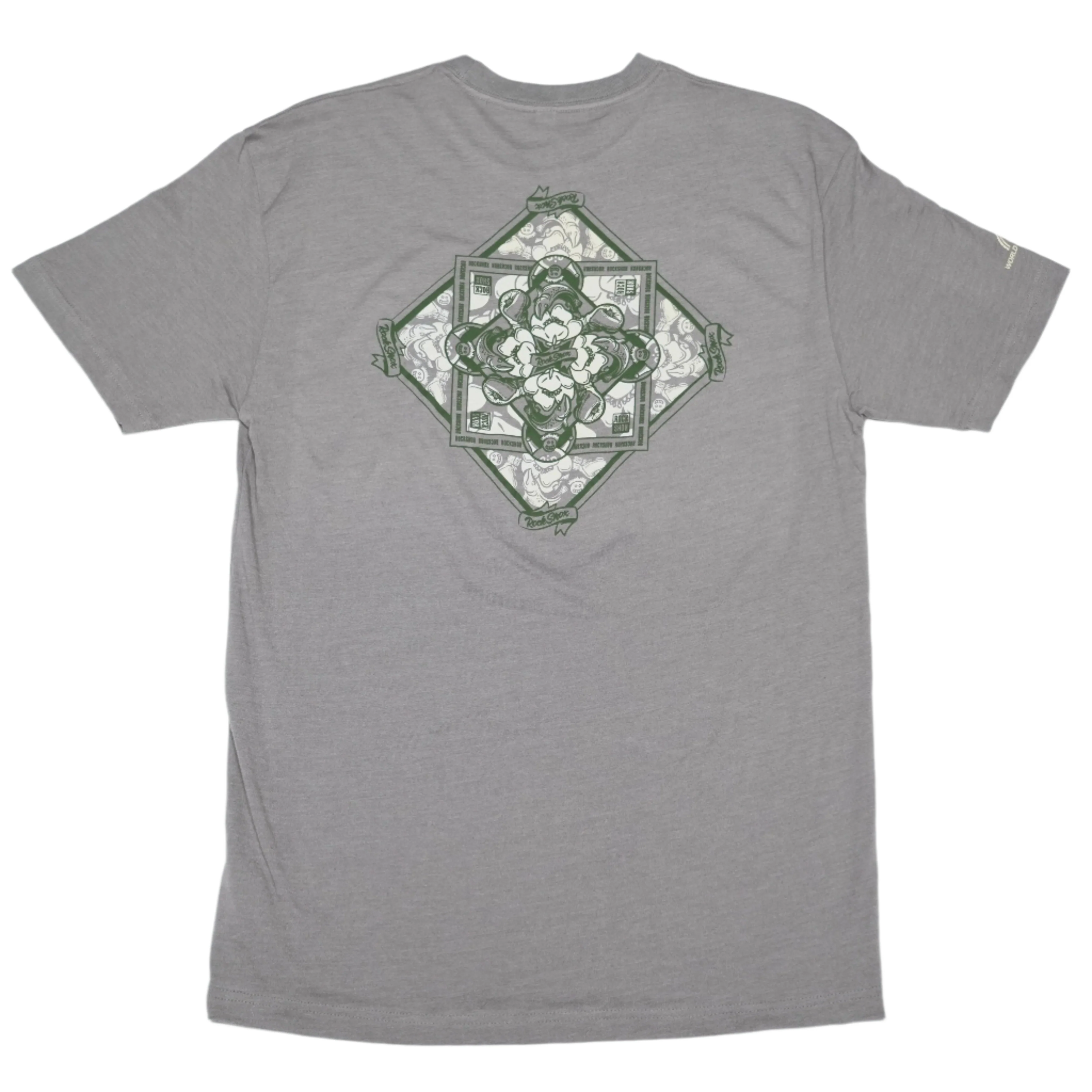 Yup, we made this print for a bandana and decided to make it a t-shirt instead. We might make a bandana out of it someday, but until then, you get the superior body coverage version. RockShox history imbedded in the design, super sick 2-tone graphic.